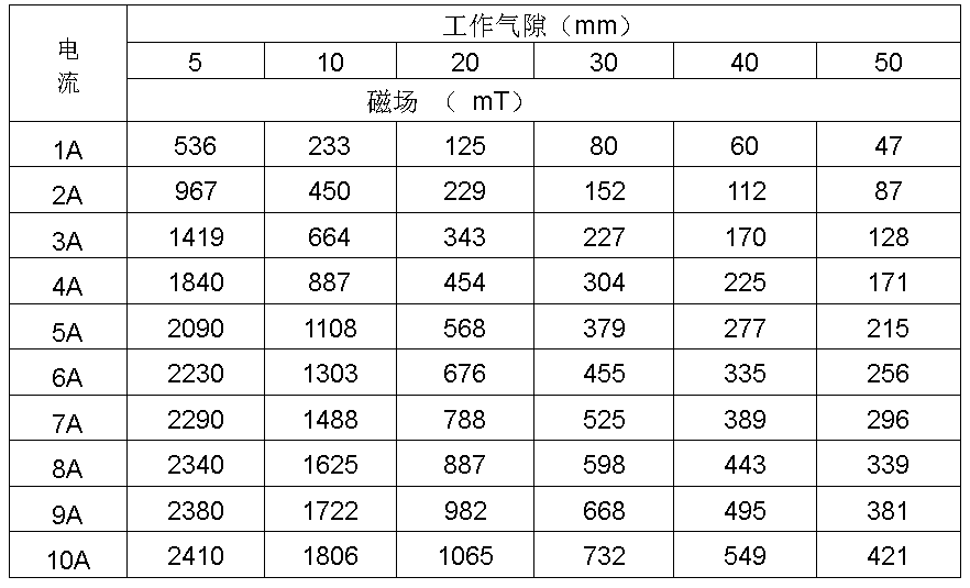 磁場強度 :工作氣隙20mm時,H≥0.7T